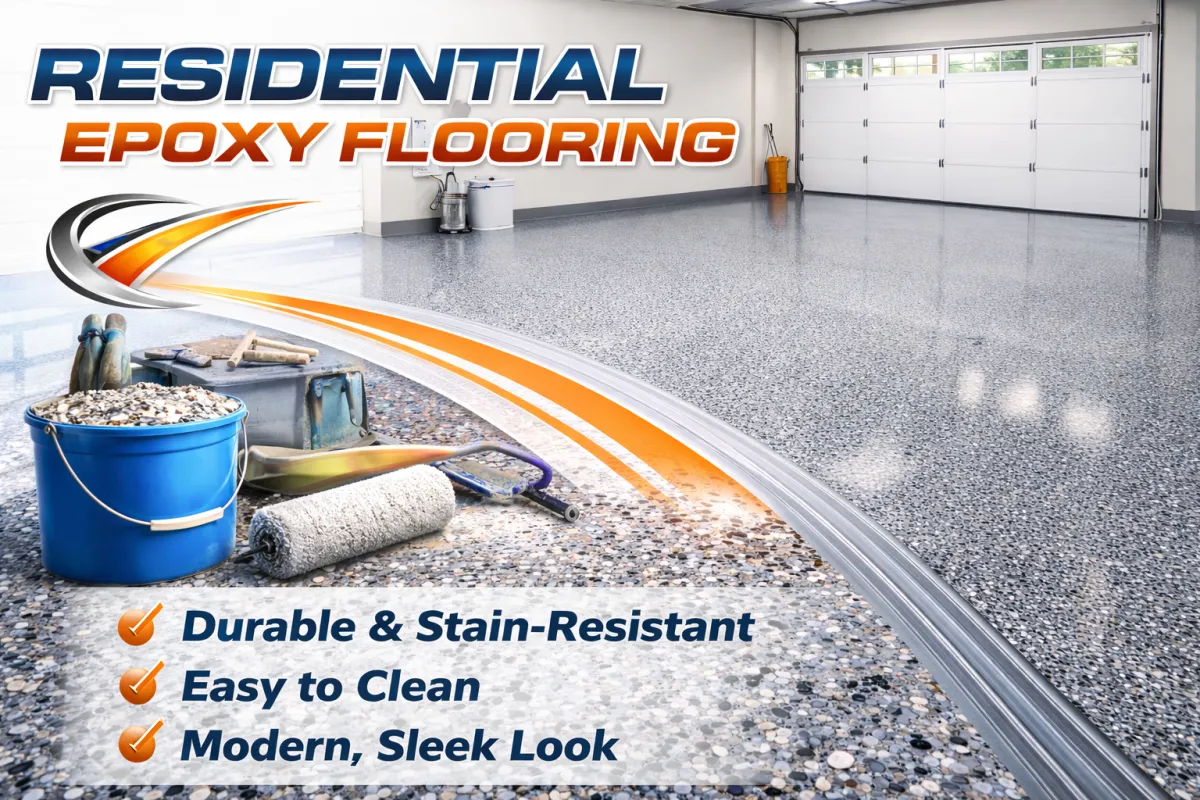Upgrade your garage, basement, or living space with sleek, durable epoxy flooring. Our residential systems are stain-resistant, easy to clean, and designed to elevate the look of your home while protecting your concrete for years to come.